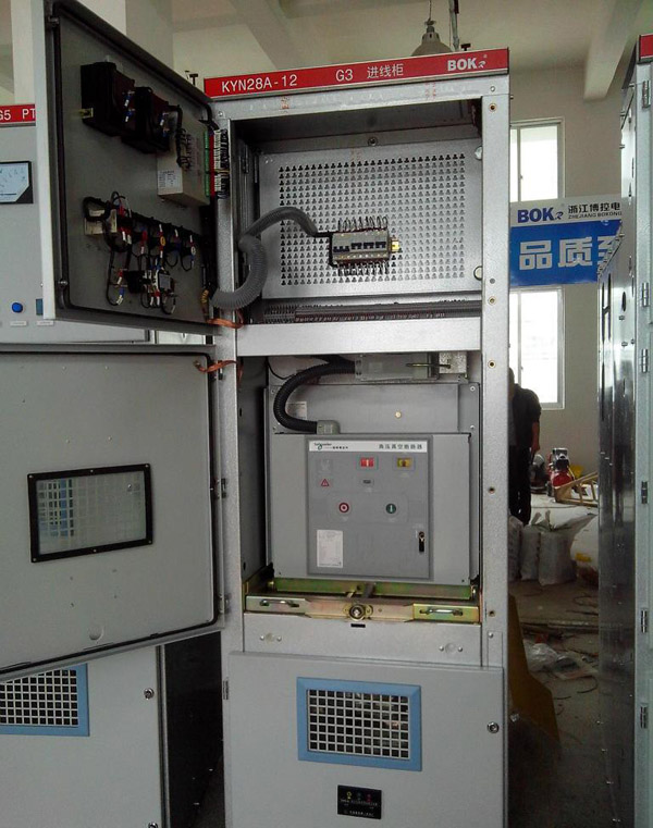 KYN28(GZS)型戶內(nèi)金屬鎧裝抽出式開關(guān)設(shè)備(以下簡稱開關(guān)設(shè)備)。該開關(guān)設(shè)備系3-10KV三相交流50Hz單母線分段系統(tǒng)的成套配電裝置。主要用于發(fā)電廠、中小型發(fā)電機送電、工礦企事業(yè)配電以及電業(yè)系統(tǒng)的二次變電所的受電、送電及大型高壓電動機起動等,實行控制保護(hù)、監(jiān)測之用。具有防止帶負(fù)荷推拉斷路器手車、防止誤分合斷路器、防止接地開關(guān)處在閉合位置時關(guān)合斷路器、防止誤入帶電隔室、防止在帶電時誤合接地開關(guān)的聯(lián)鎖功能,既可配用VS1真空斷路器,也可配用ABB公司的VD4真空斷路器,是一種性能優(yōu)越的配電裝置。